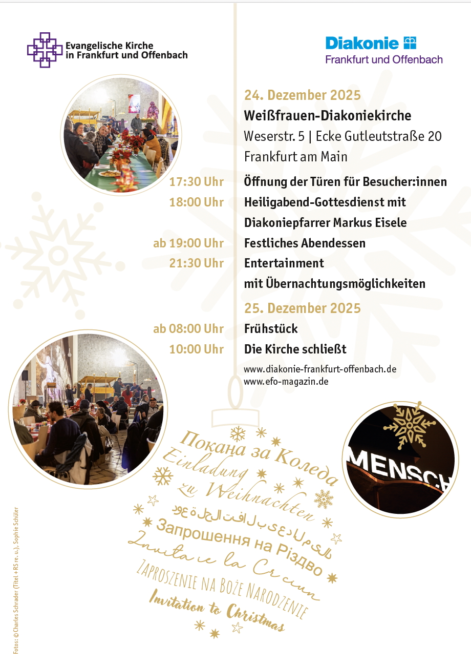 Wir freuen uns über Belegexemplare an: Evangelischer Regionalverband Frankfurt und Offenbach Fachbereiche: Beratung, Bildung, Jugend | Diakonie und Seelsorge | Evangelische Tageseinrichtungen für Kinder Kurt-Schumacher-Straße 31, 60311 Frankfurt am Main oder per Email an kommunikation@diakonie-frankfurt-offenbach.de